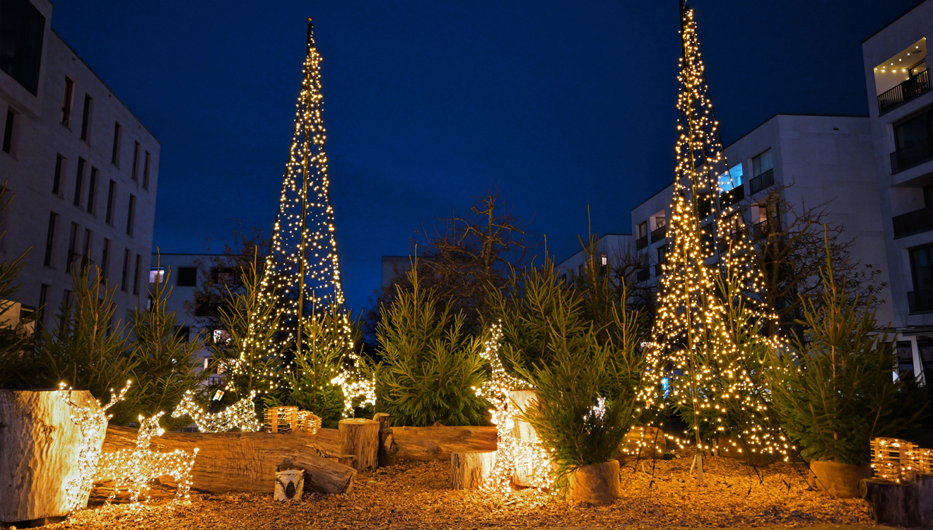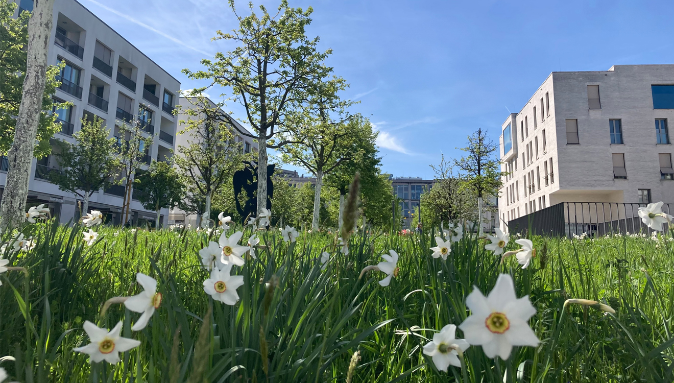 Eigene Kita. Platz zum Toben. Bänke zum Ausruhen. Wiesen mit Bäumen. Lifestyle und Lebensmittel. Naturnahes Einkaufen für die ganze Familie.